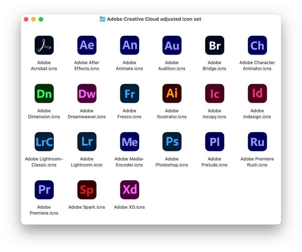 Adobe Creative Cloud adjusted icon set for macOS Big Sur