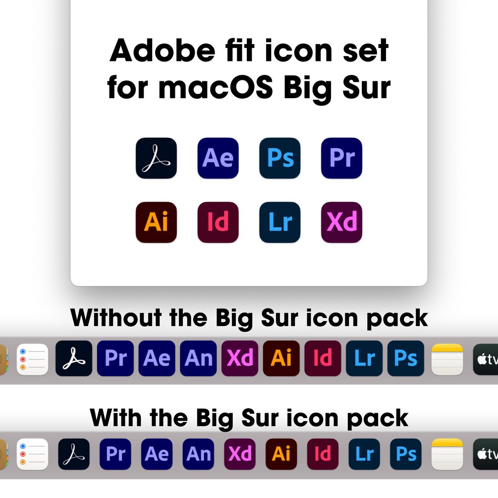 Adobe Creative Cloud fit icons adjusted to render beautifully on macOS Big Sur